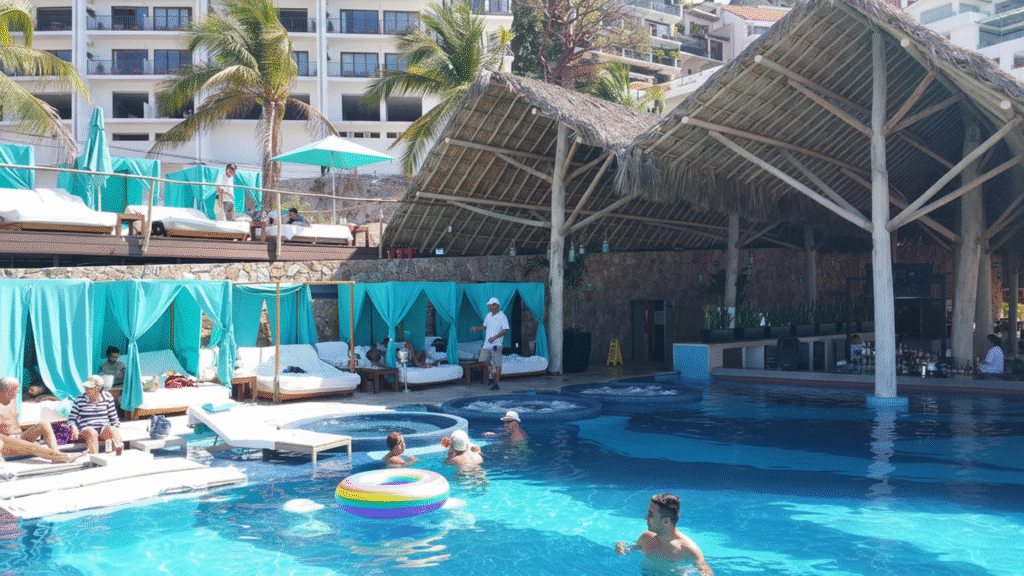 The epicenter of this welcoming energy is the Zona Romántica (Romantic Zone). This charming neighborhood, with its cobblestone streets and lush, tropical foliage, is where you’ll find the highest concentration of gay-owned and gay-friendly businesses. By day, the area is a relaxed hub of chic boutiques, art galleries, and cafes. But as the sun sets, the energy shifts. The iconic Blue Chairs Resort on Playa Los Muertos becomes a sundowner spectacle, its namesake blue loungers filled with an international crowd sipping margaritas as the sky erupts in color.